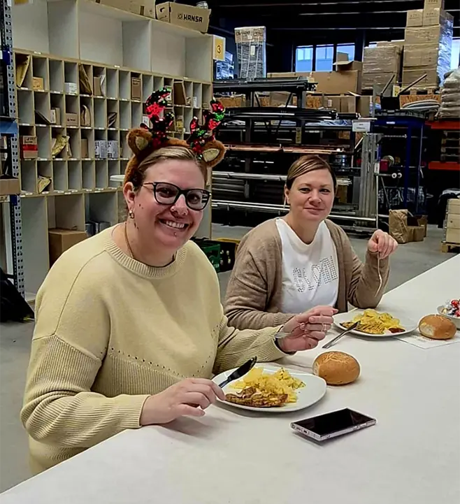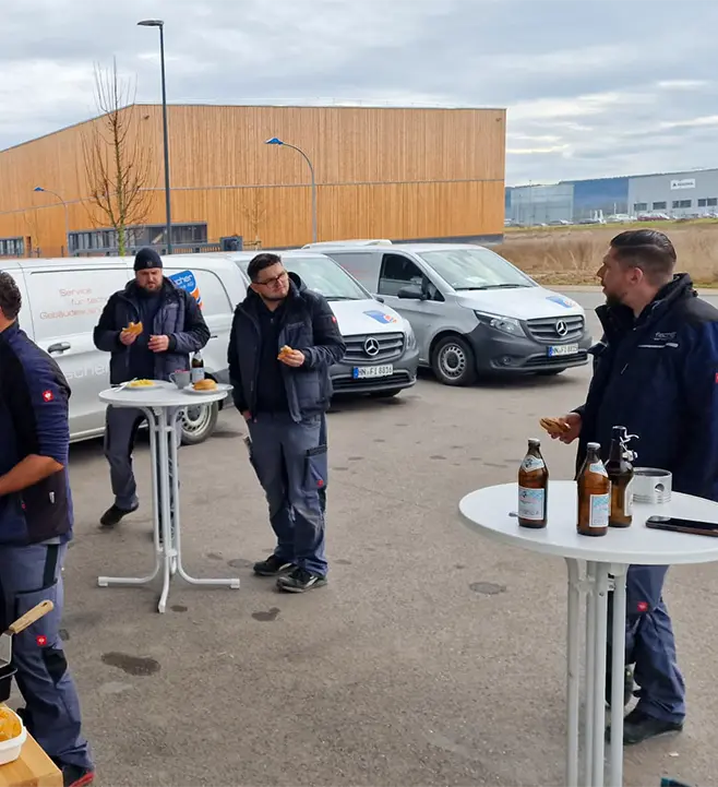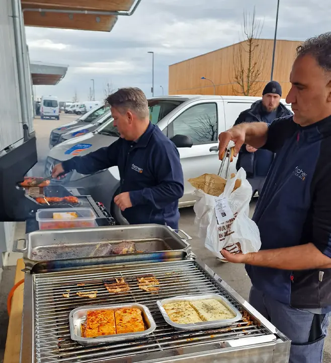 Direkt auf dem Firmengelände kamen unsere Mitarbeitenden zusammen, um das Jahr bei einem gemeinsamen Grillfest ausklingen zu lassen. Vor der Halle wurde der Grill angeworfen, es duftete nach frisch Gegrilltem und schnell bildeten sich kleine Gruppen aus Kolleginnen und Kollegen, die gemeinsam aßen, lachten und ins Gespräch kamen.